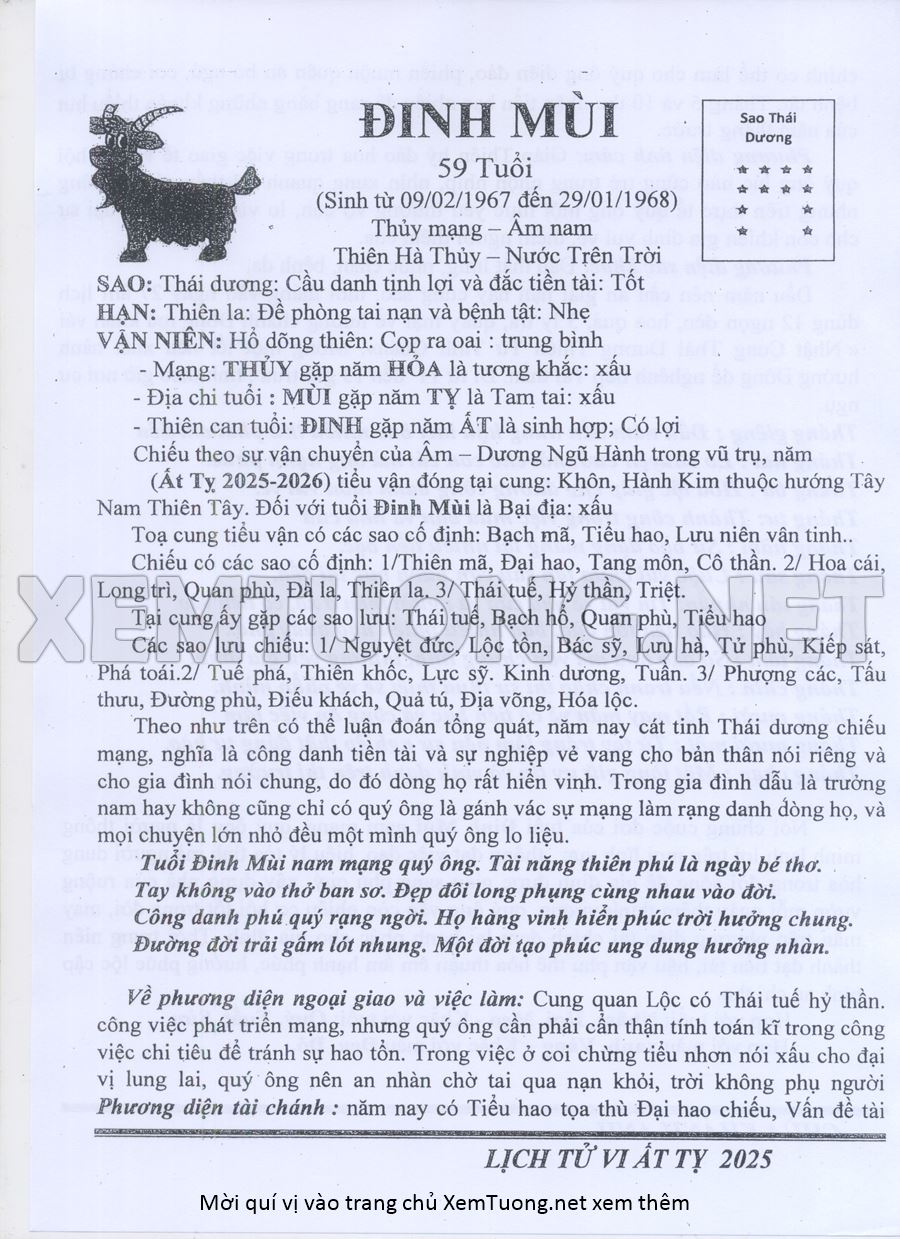 Tử Vi Năm Ất Tỵ 2025 mạng nam ĐINH MÙI