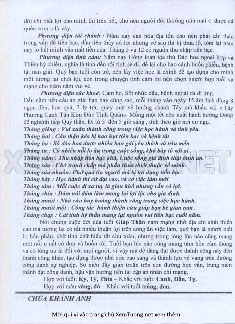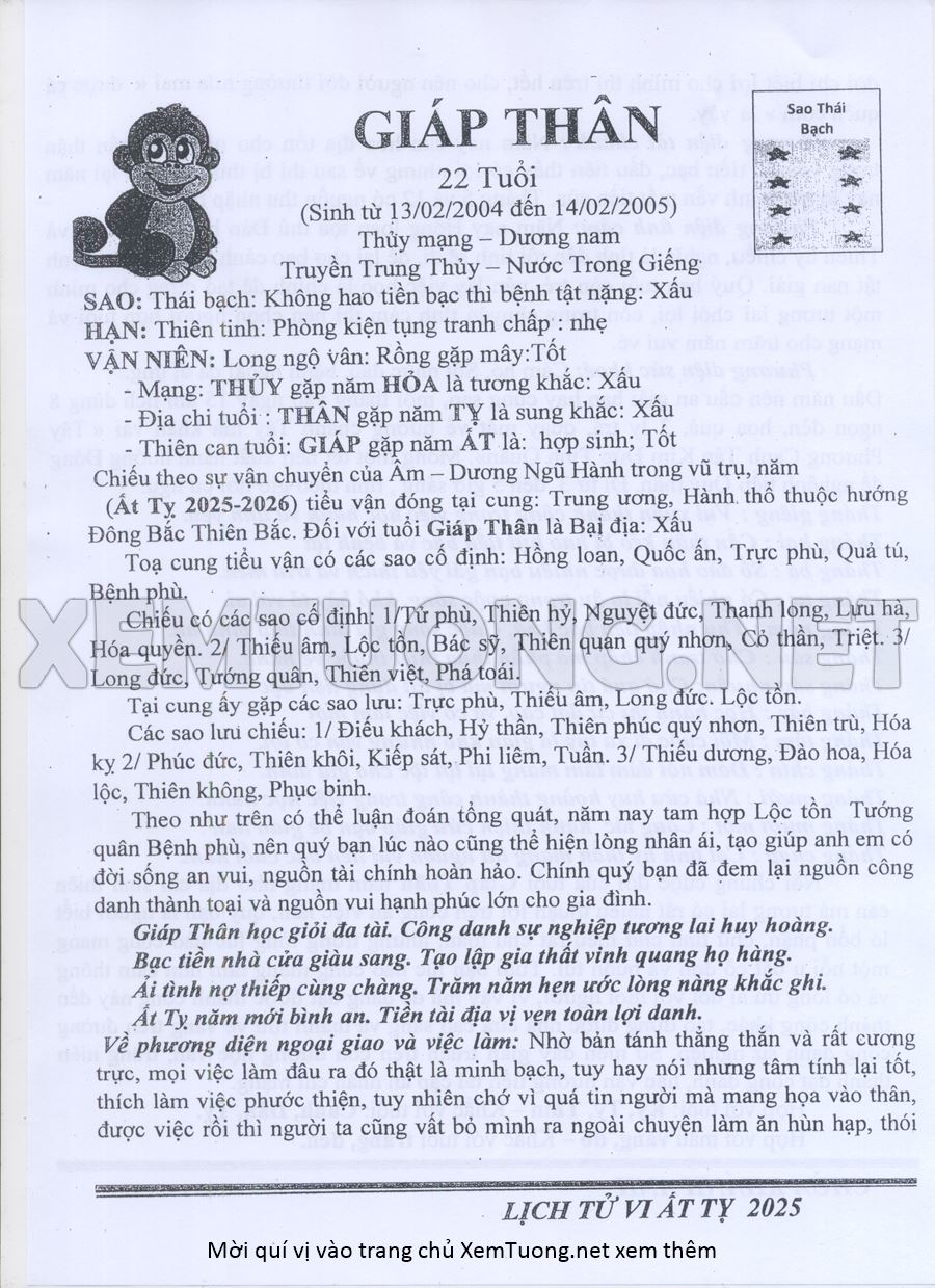Tử Vi Năm Ất Tỵ 2025 mạng nam GIÁP THÂN