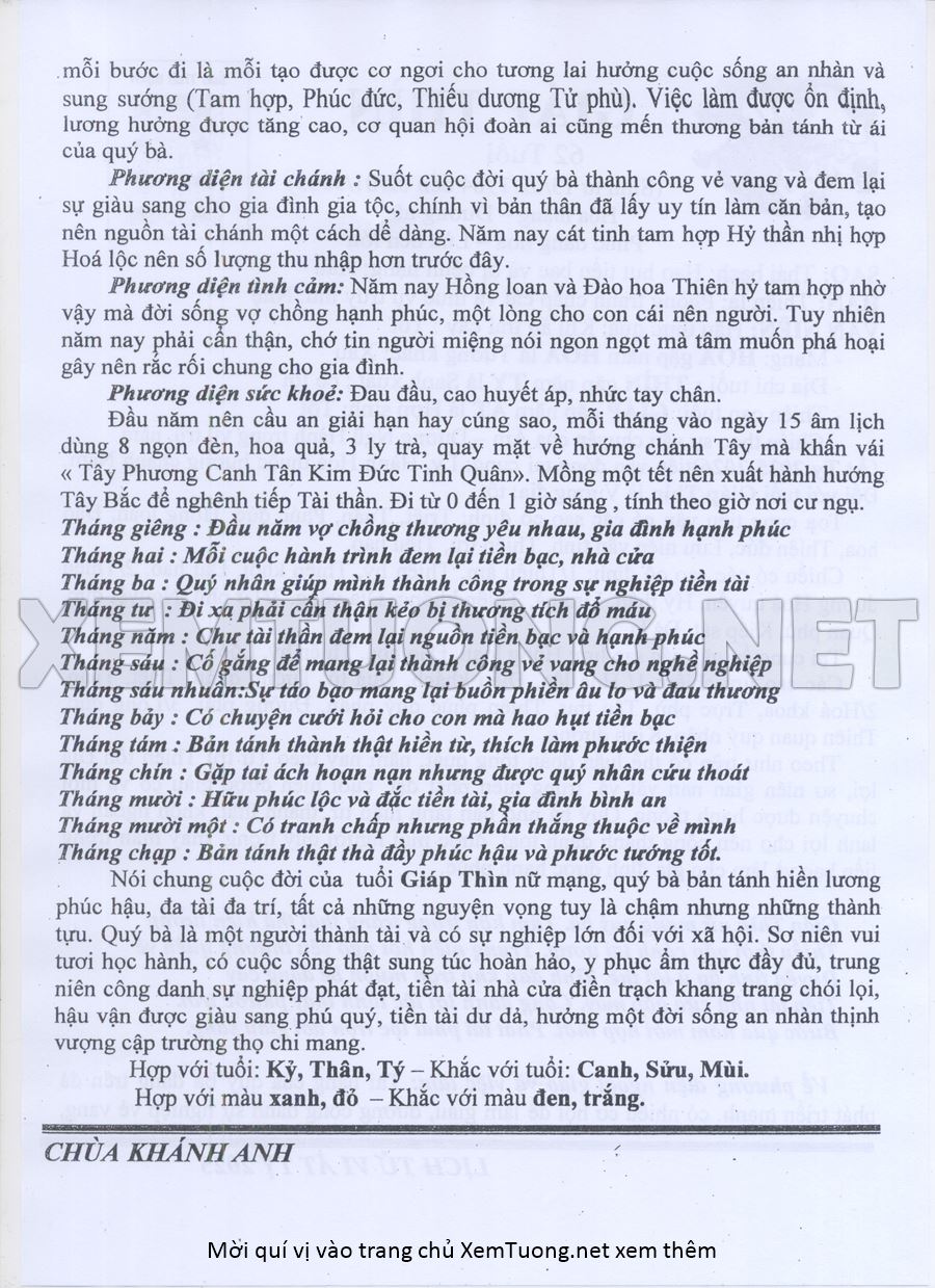 Tử Vi Năm Ất Tỵ 2025 mạng nữ GIÁP THÌN