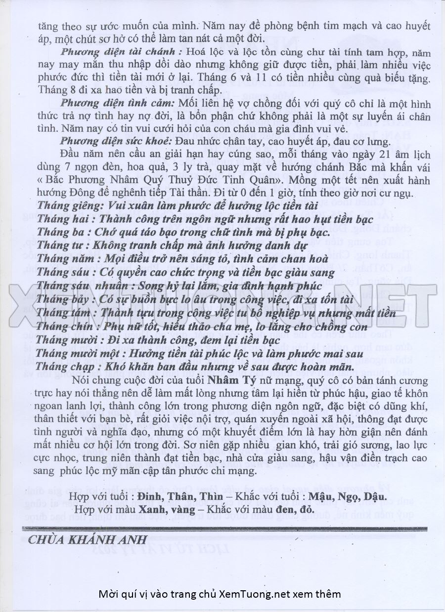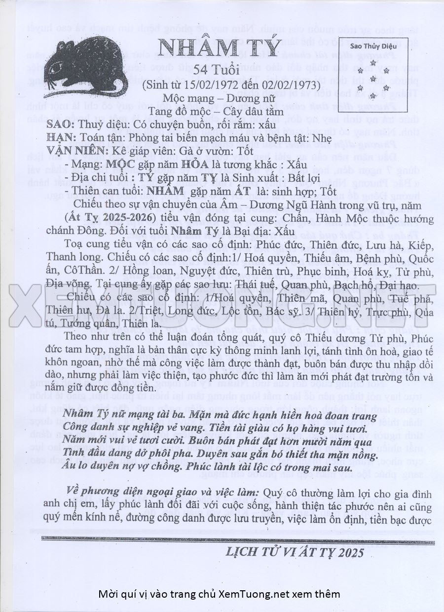 Tử Vi Năm Ất Tỵ 2025 mạng nữ NHÂM TÝ