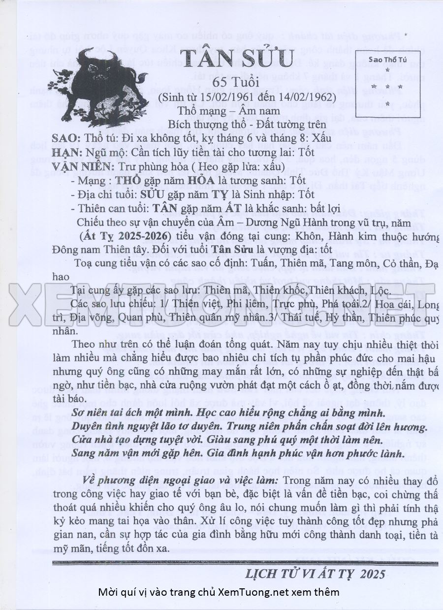 Tử Vi Năm Ất Tỵ 2025 mạng nam TÂN SỬU