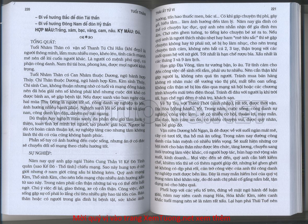 (Lưu ý: Thái Ất Tử Vi được chúng tôi scan từ sách, do đó mỗi tuổi sẽ có nhiều trang, quý vị xem xong hãy nhấn vào trang tiếp theo để xem hết phần tuổi muốn xem. Nếu quý vị xem bằng điện thoại thì hãy kéo qua lại để xem phần bị khuất.)