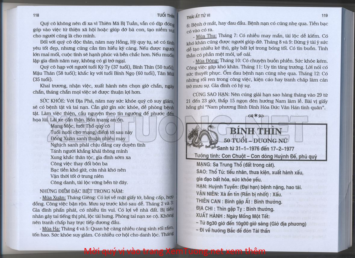 (Lưu ý: Thái Ất Tử Vi được chúng tôi scan từ sách, do đó mỗi tuổi sẽ có nhiều trang, quý vị xem xong hãy nhấn vào trang tiếp theo để xem hết phần tuổi muốn xem. Nếu quý vị xem bằng điện thoại thì hãy kéo qua lại để xem phần bị khuất.)