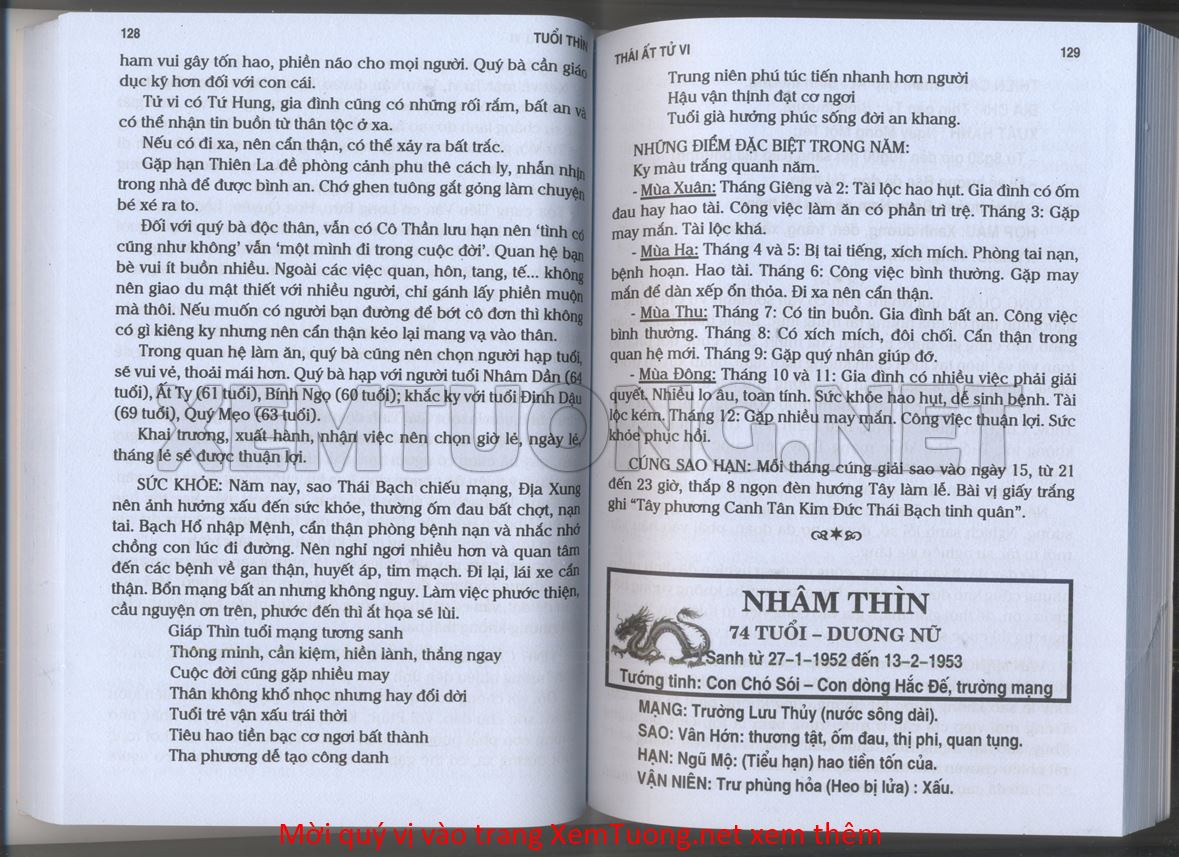 (Lưu ý: Thái Ất Tử Vi được chúng tôi scan từ sách, do đó mỗi tuổi sẽ có nhiều trang, quý vị xem xong hãy nhấn vào trang tiếp theo để xem hết phần tuổi muốn xem. Nếu quý vị xem bằng điện thoại thì hãy kéo qua lại để xem phần bị khuất.)