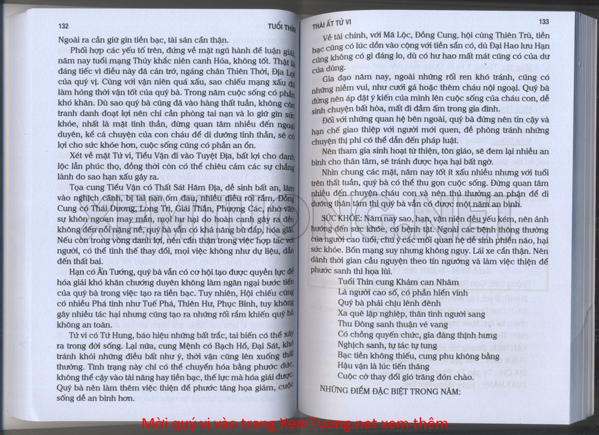 (Lưu ý: Thái Ất Tử Vi được chúng tôi scan từ sách, do đó mỗi tuổi sẽ có nhiều trang, quý vị xem xong hãy nhấn vào trang tiếp theo để xem hết phần tuổi muốn xem. Nếu quý vị xem bằng điện thoại thì hãy kéo qua lại để xem phần bị khuất.)