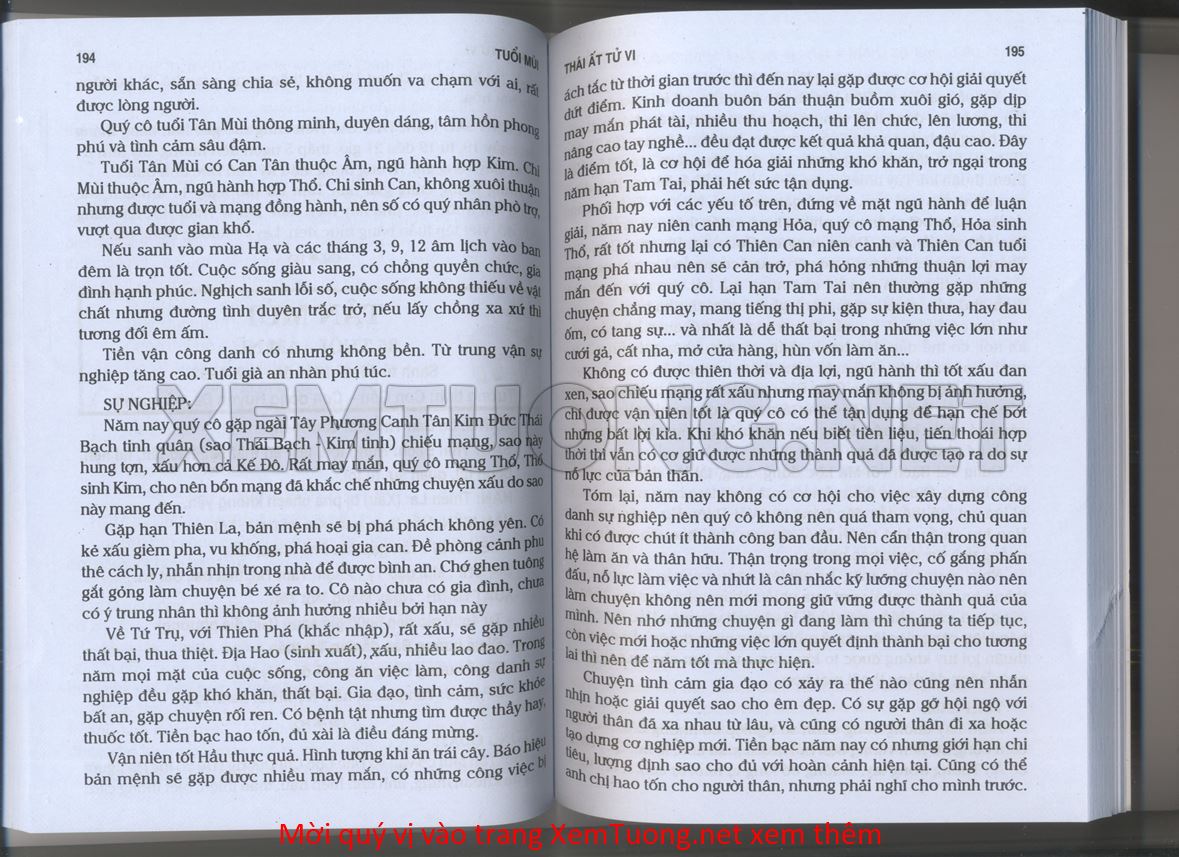 (Lưu ý: Thái Ất Tử Vi được chúng tôi scan từ sách, do đó mỗi tuổi sẽ có nhiều trang, quý vị xem xong hãy nhấn vào trang tiếp theo để xem hết phần tuổi muốn xem. Nếu quý vị xem bằng điện thoại thì hãy kéo qua lại để xem phần bị khuất.)