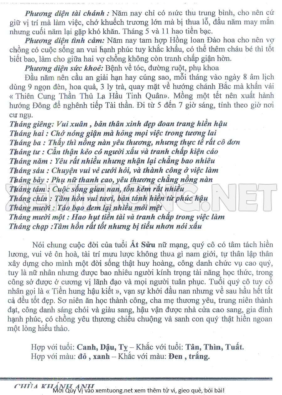 Tử Vi Năm Bính Ngọ 2026 mạng nữ ẤT SỬU