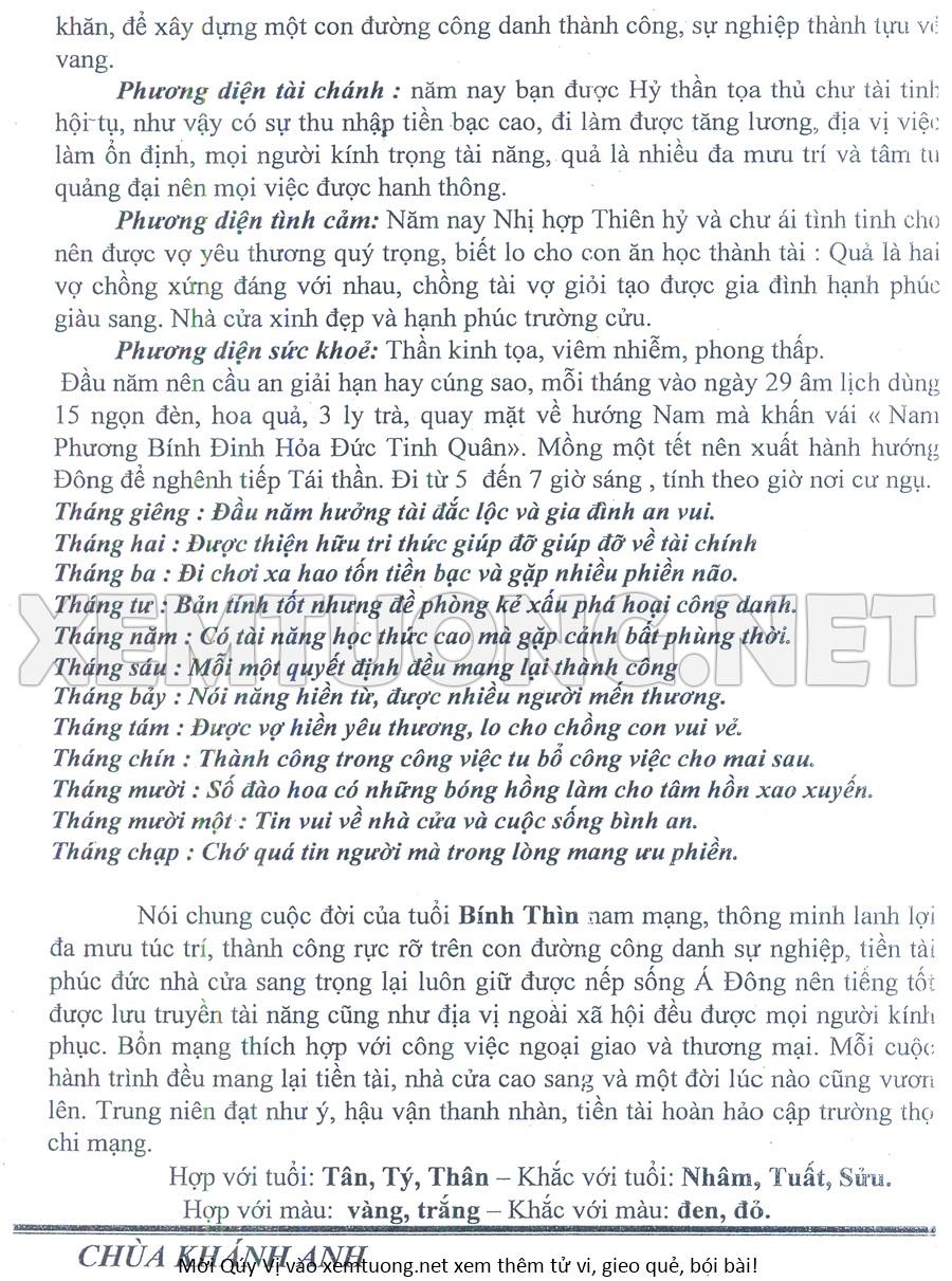 Tử Vi Năm Bính Ngọ 2026 mạng nam BÍNH THÌN