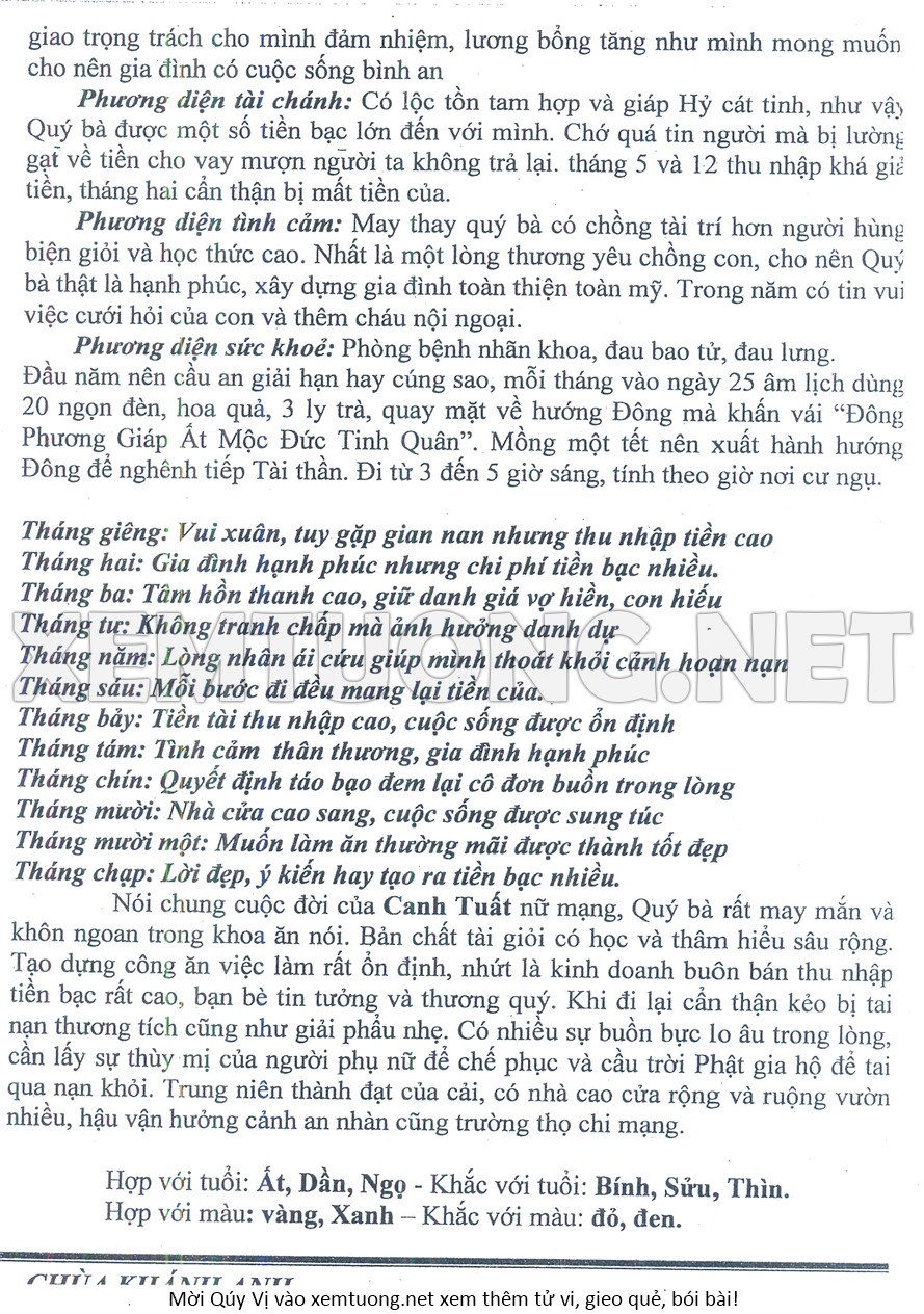 Tử Vi Năm Bính Ngọ 2026 mạng nữ CANH TUẤT