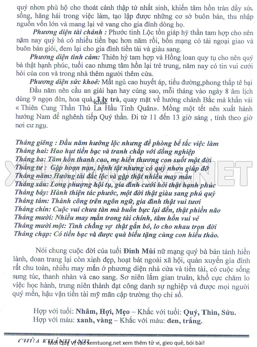 Tử Vi Năm Bính Ngọ 2026 mạng nữ Đinh MÙI