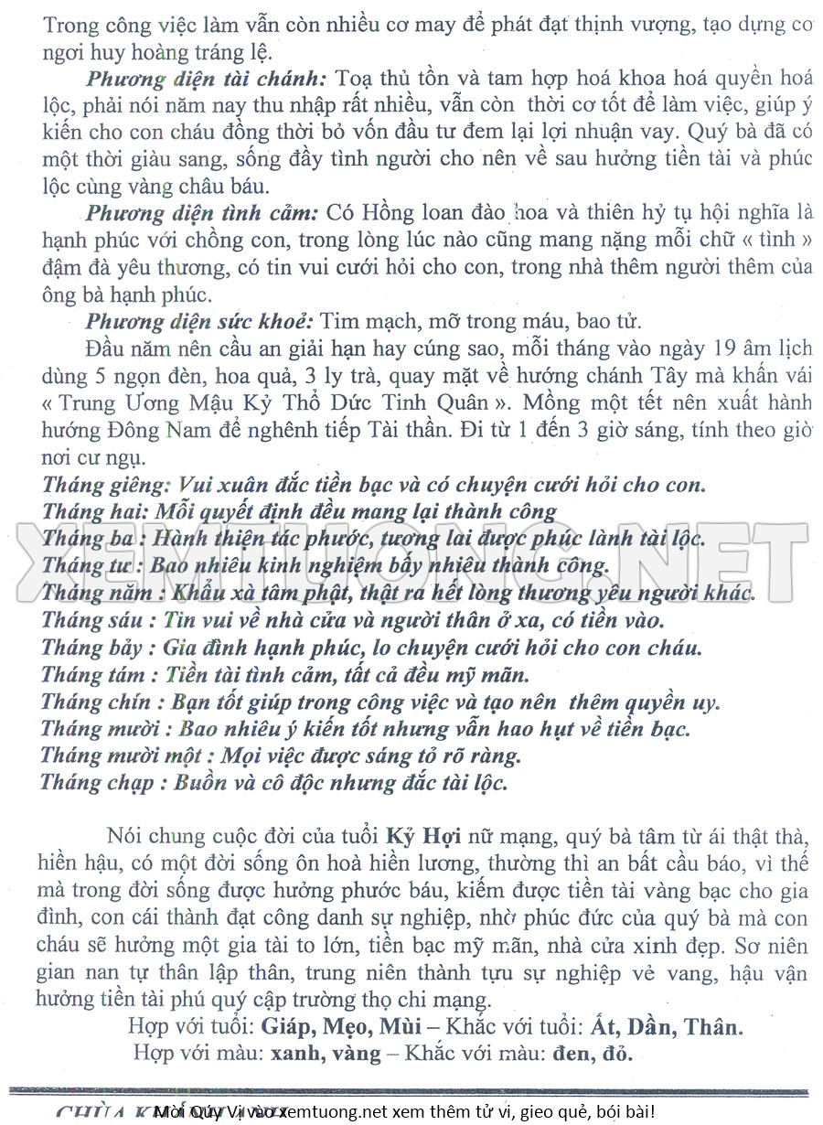 Tử Vi Năm Bính Ngọ 2026 mạng nữ KỶ HỢI