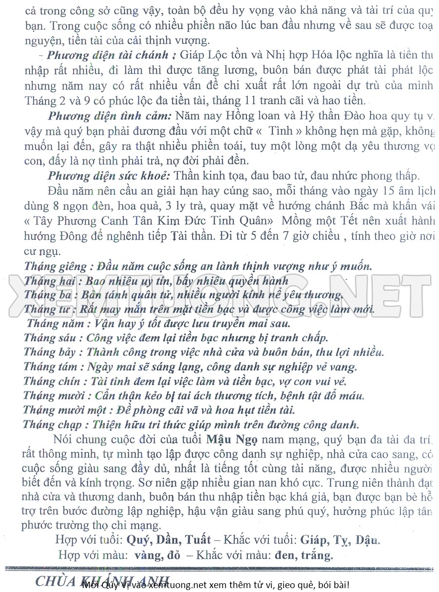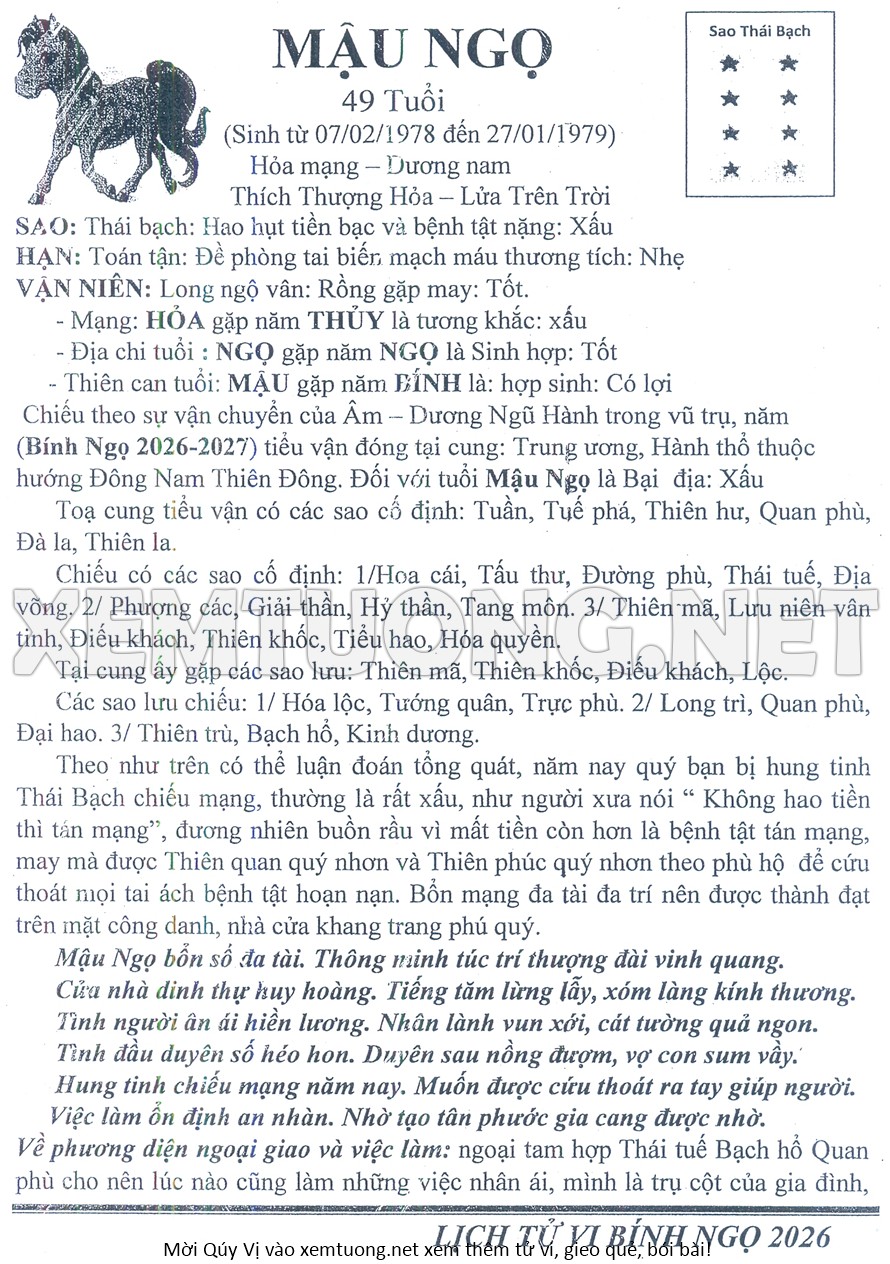 Tử Vi Năm Bính Ngọ 2026 mạng nam MẬU NGỌ