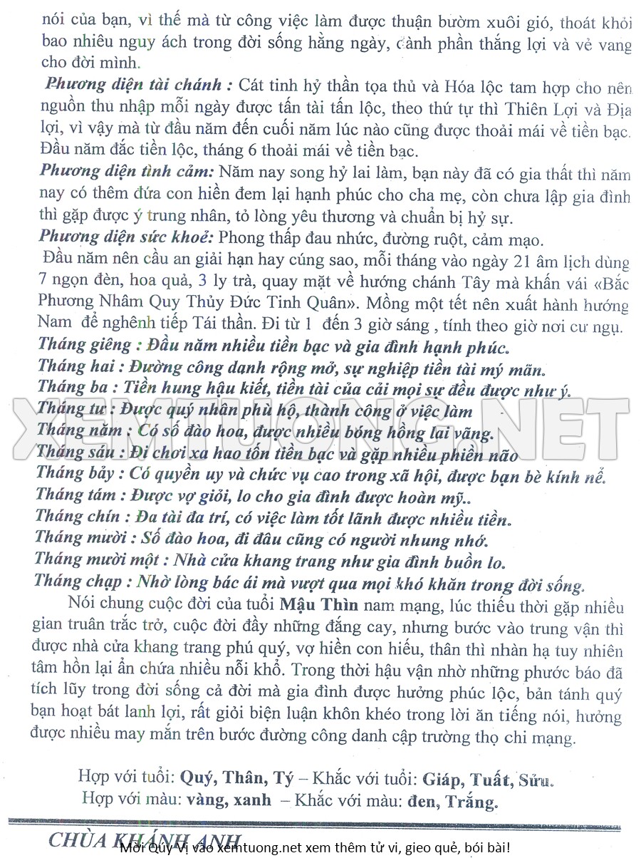 Tử Vi Năm Bính Ngọ 2026 mạng nam MẬU THÌN