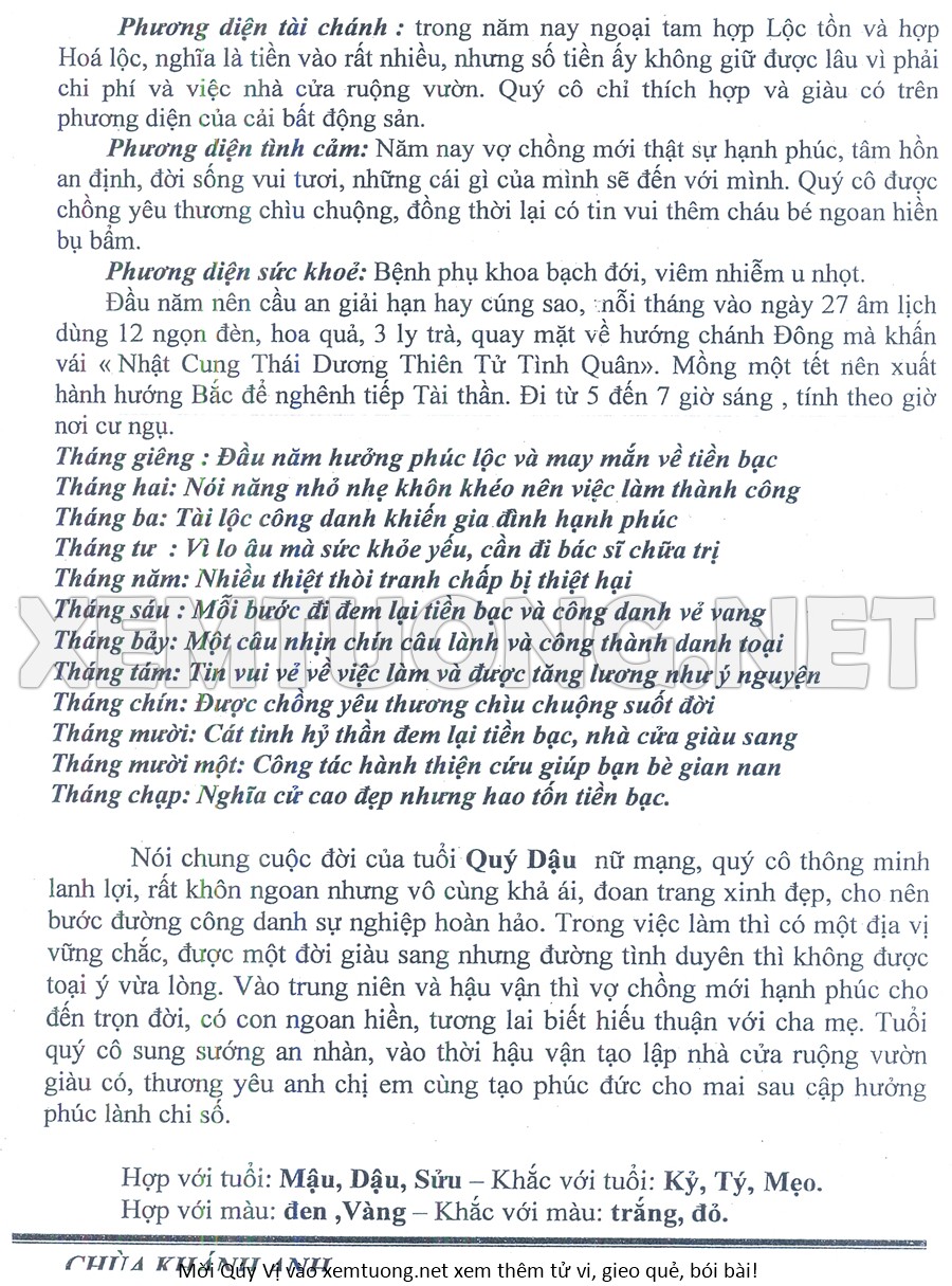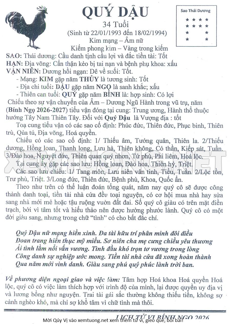 Tử Vi Năm Bính Ngọ 2026 mạng nữ QUÝ DẬU