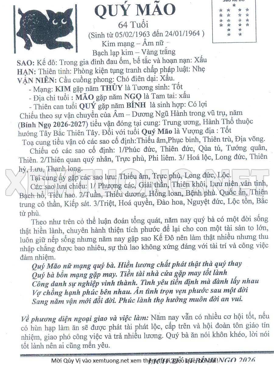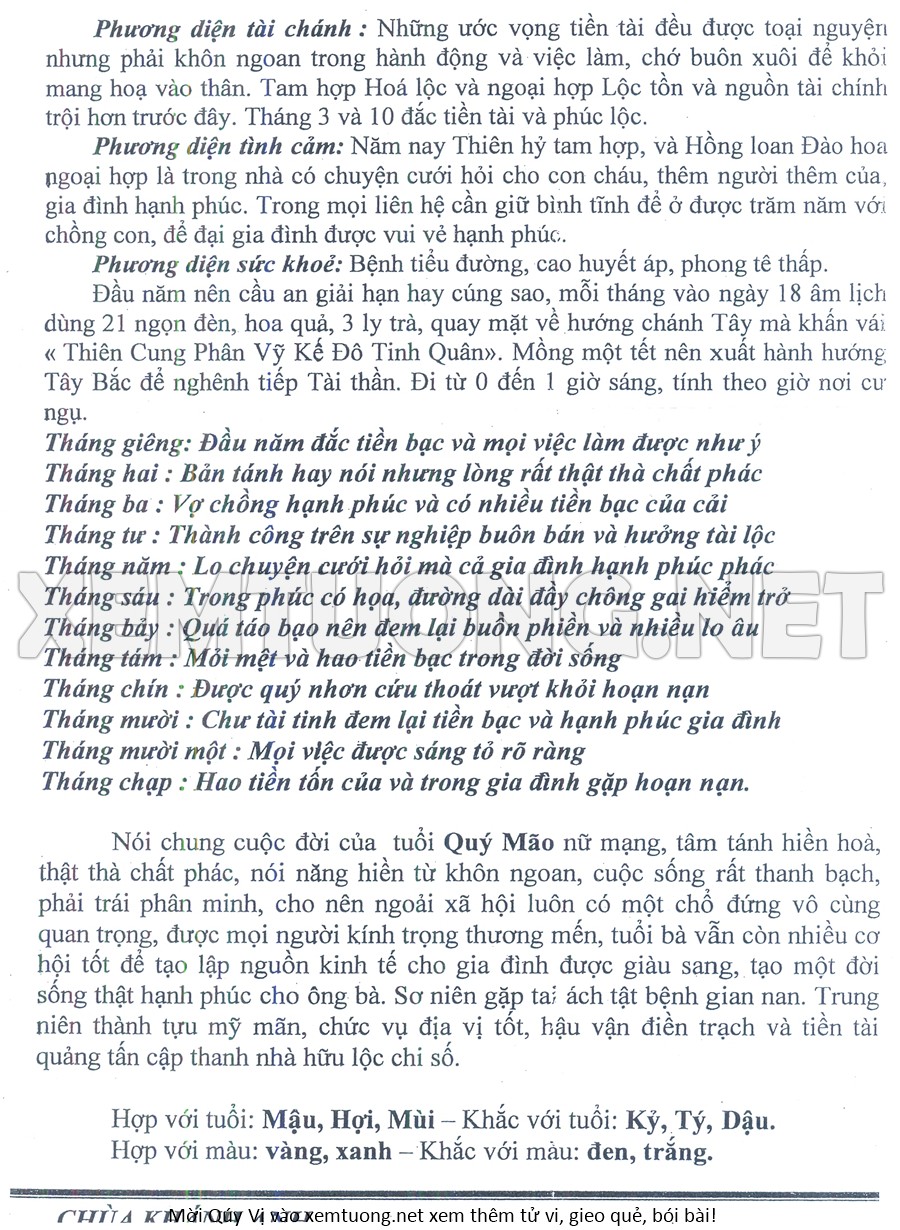 Tử Vi Năm Bính Ngọ 2026 mạng nữ QUÝ MÃO
