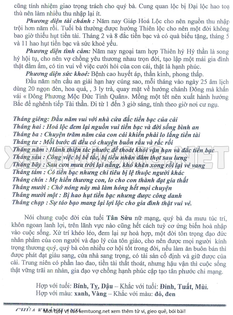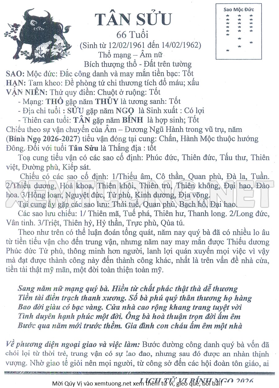 Tử Vi Năm Bính Ngọ 2026 mạng nữ TÂN SỬU