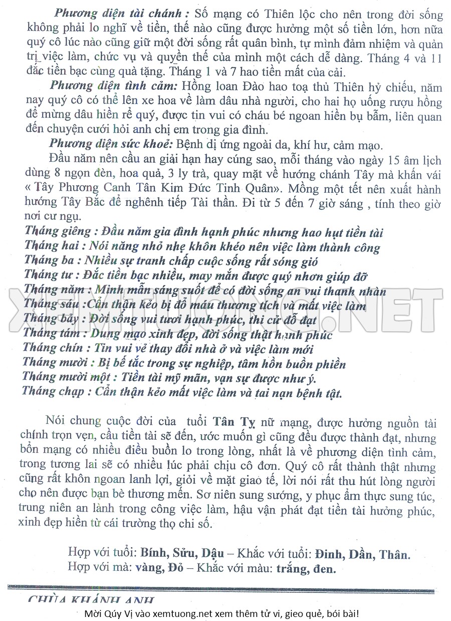 Tử Vi Năm Bính Ngọ 2026 mạng nữ TÂN TỴ
