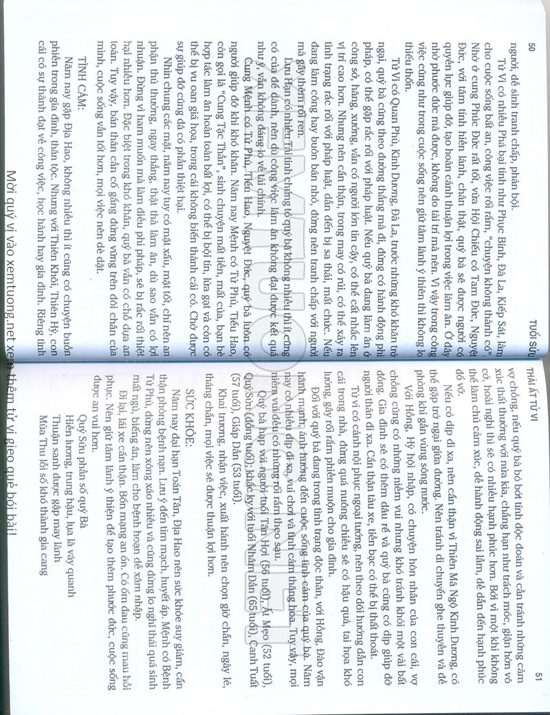(Lưu ý: Thái Ất Tử Vi được chúng tôi scan từ sách, do đó mỗi tuổi sẽ có nhiều trang, quý vị xem xong hãy nhấn vào trang tiếp theo để xem hết phần tuổi muốn xem. Nếu quý vị xem bằng điện thoại thì hãy kéo qua lại để xem phần bị khuất.)