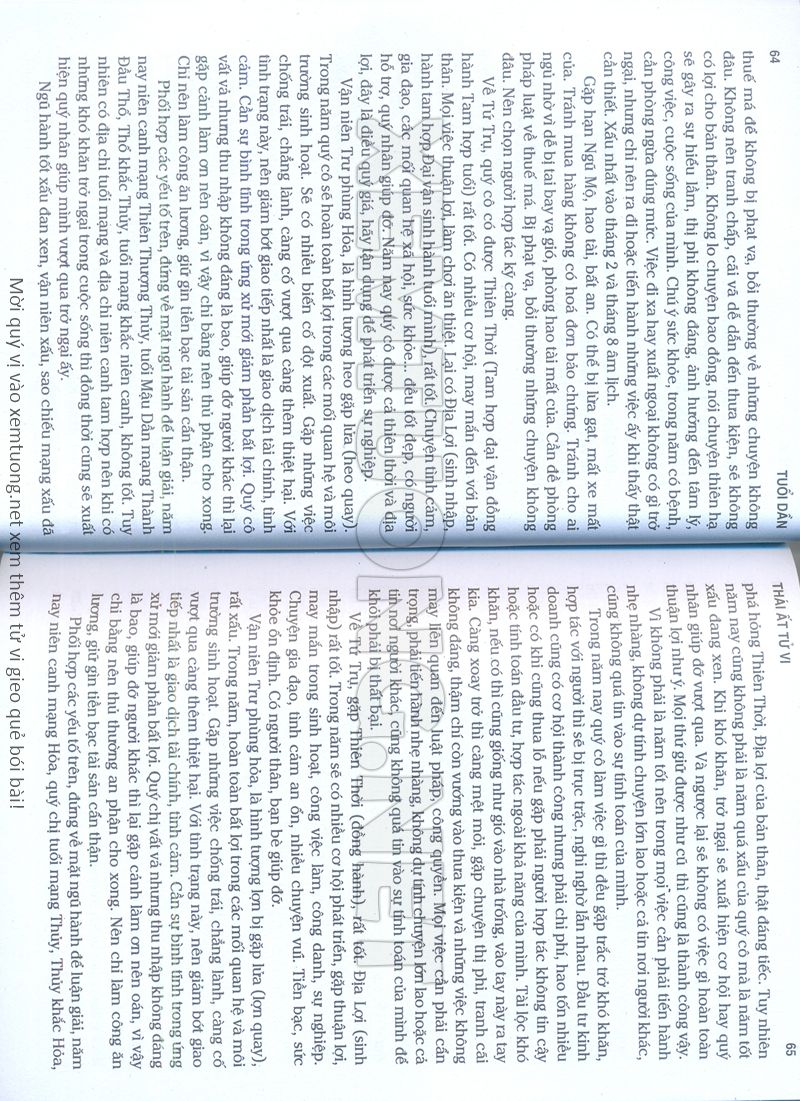 (Lưu ý: Thái Ất Tử Vi được chúng tôi scan từ sách, do đó mỗi tuổi sẽ có nhiều trang, quý vị xem xong hãy nhấn vào trang tiếp theo để xem hết phần tuổi muốn xem. Nếu quý vị xem bằng điện thoại thì hãy kéo qua lại để xem phần bị khuất.)