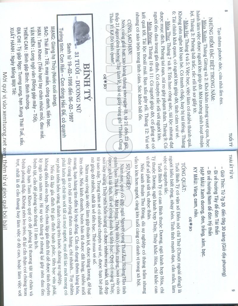 (Lưu ý: Thái Ất Tử Vi được chúng tôi scan từ sách, do đó mỗi tuổi sẽ có nhiều trang, quý vị xem xong hãy nhấn vào trang tiếp theo để xem hết phần tuổi muốn xem. Nếu quý vị xem bằng điện thoại thì hãy kéo qua lại để xem phần bị khuất.)